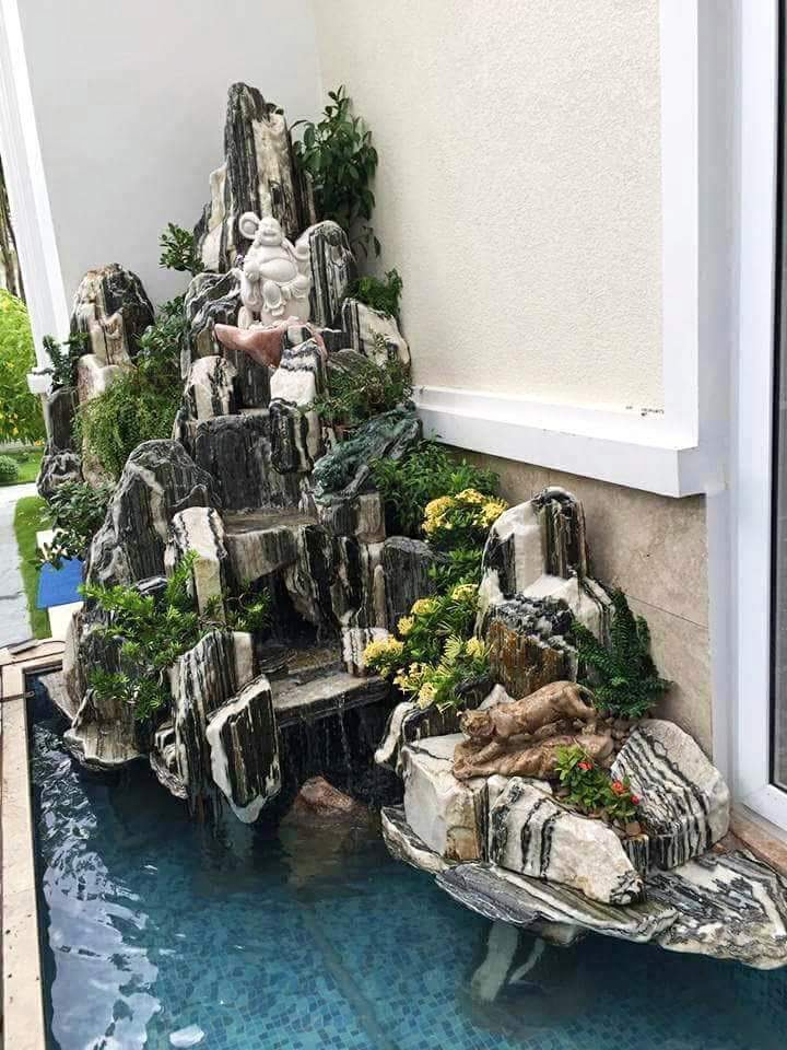 Trang trí hòn non bộ trước nhà còn mang tính giải trí, giúp gia chủ thư giãn sau những giờ mệt mỏi và tạo không gian xanh cho ngôi nhà. Hãy làm cho tiểu cảnh sân vườn nhà bạn thêm thoáng mát với những sản phẩm hòn non bộ thật đẹp.
